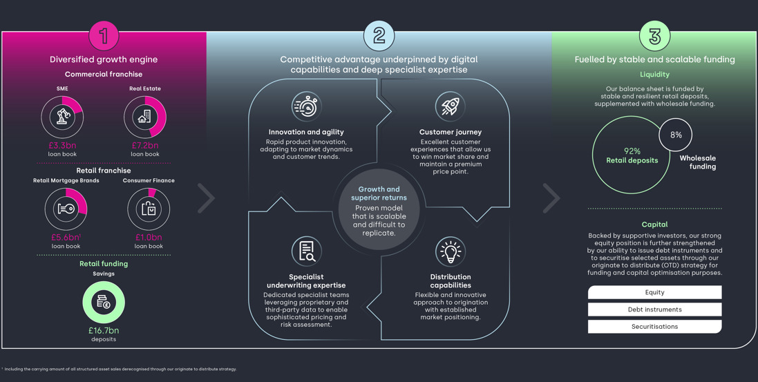 We leverage our differentiated, digitally enabled and scalable banking platform to provide finance to a wide range of customers across the SME, real estate and consumer sectors who value the premium experience, flexibility, speed and certainty that we deliver.