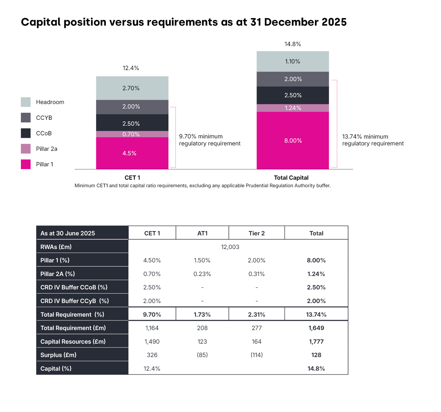 Capital position versus requirements as at 31 December 2025